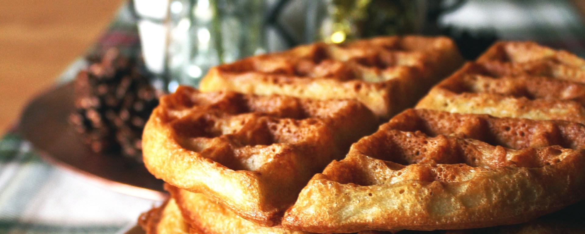 What a tasty surprise! These waffles have a perfectly crisp outer layer and fluffy insides with a satisfyingly deep yeasty flavor. Their golden ridges provide enough structural integrity for them to become the perfect vehicles for your favorite toppings. So pile them on! I was able to eat them like giant giant chips and dip (for science, of course).