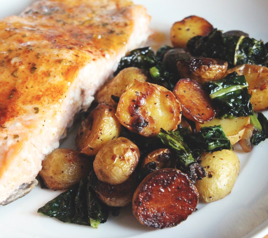 Salmon with Pan-Roasted Potatoes and Dino Kale